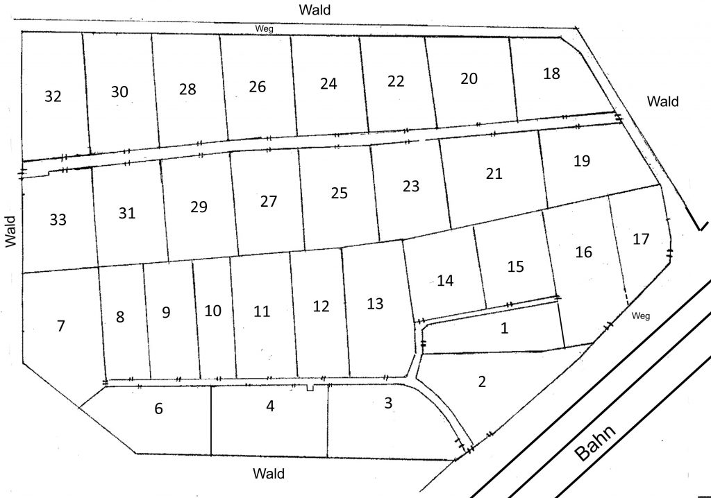 Lageskizze Garten 25 Ideal für einen Neuanfang Größe: 303 m² Garten 9 Gepflegter Kleingarten Größe: 283 m² Wertangabe lt. Wertermittlungsprotokoll: 1055,28 € Bei Interesse an einem der Gärten nutzen Sie bitte das Kontaktformular